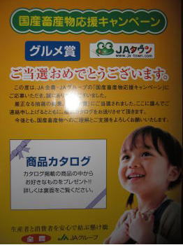 【本日の当選】・国産畜産物応援キャンペーングルメ賞 (JA全農・JA)