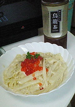 いくらとシャケの親子パスタ。