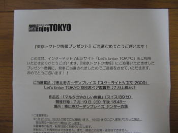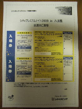 シティプレミアムナイトチケットが当選。
